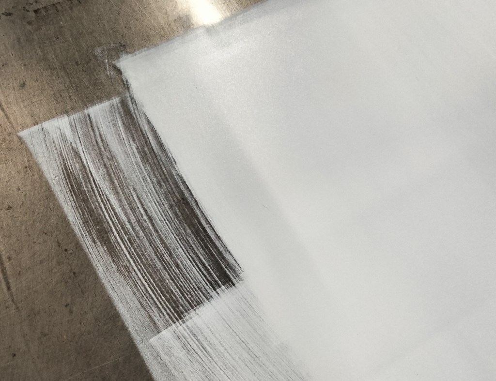 While rolling out ink for my previous print, I noticed that the remnants of the ecowash I had sprayed on the perspex was acting as a resist to the ink. The streaked marks of the wiped ecowash inspired me to use this lithographic accident to my advantage to create backgrounds for my monotypes, as it seemed as if it could add great texture and depth to my prints.
