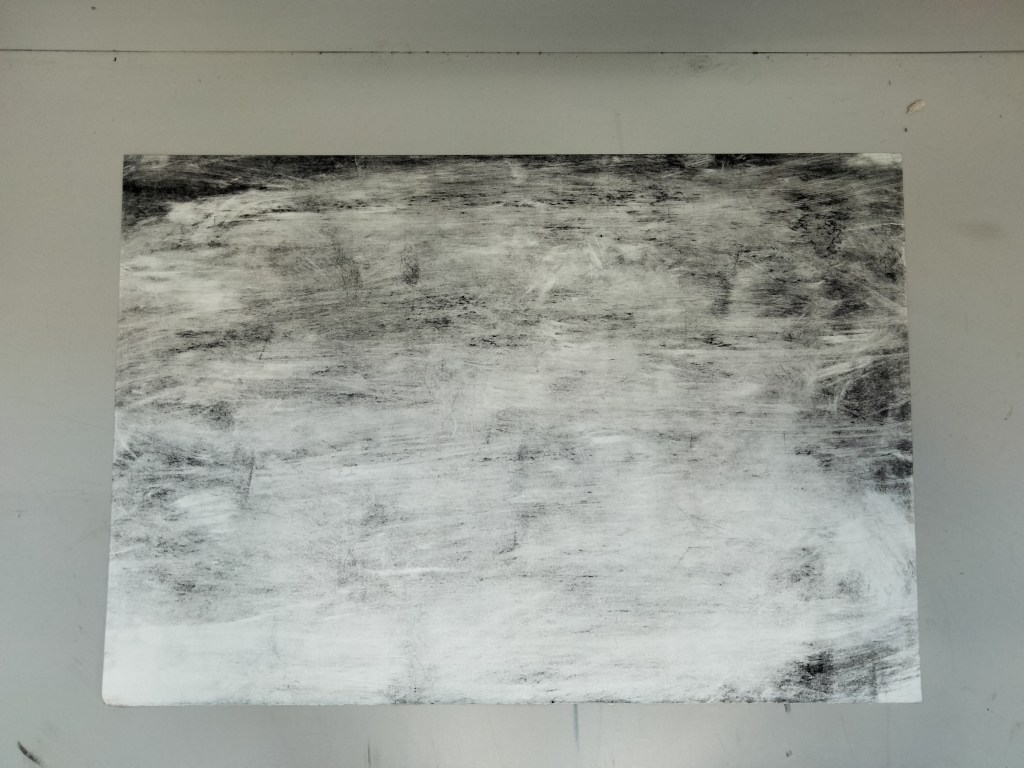 I started a second print where I worked out creating a more realistic stormy sky for a landscape. One layer of print with the same technique as above did not give the dense, grey sky I intended.